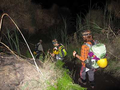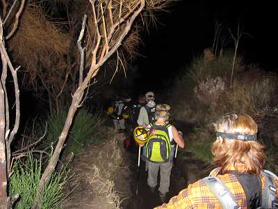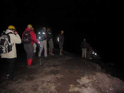 Under nedfärden blev det helt mörkt. Då måste man ha pannlampor på sig för att kunna se