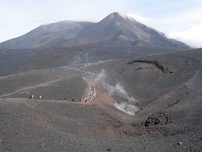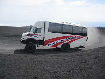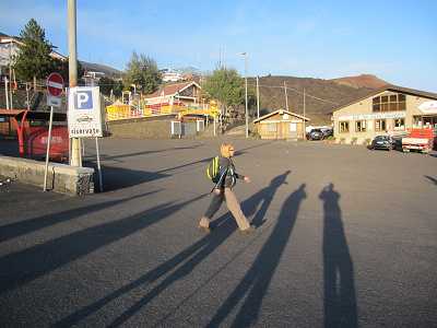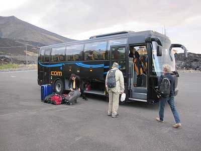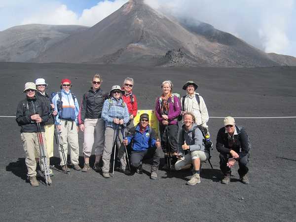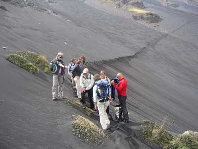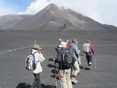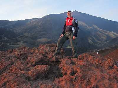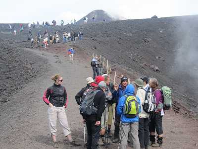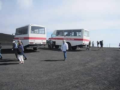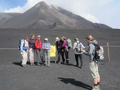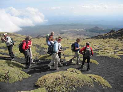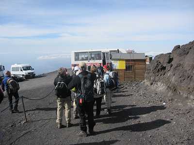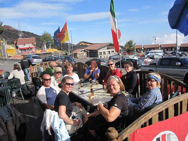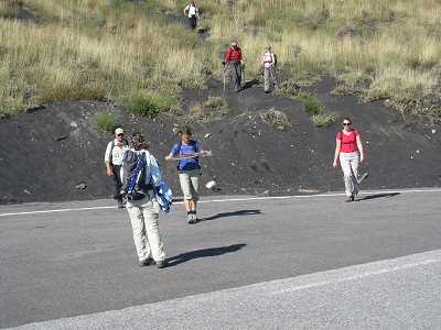 Dag 7: Måndag 4/10 2010 kl. 18:00 När vi kom fram till Milazzo i går var det väldigt varmt runt 35 grader. Där väntade en minibuss som skulle ta oss uppför Etna. Efter en halvtimmes paus drog vi iväg. Bussens luftkonditionering fungerade inte så bra så det blev väldigt varmt, men med öppna takluckor gick det rätt så bra. Så småningom körde vi en väg uppför Etnas sluttning. Resan tog drygt två timmar och ett tag körde vi genom en molnbank, så att inget syntes. Längre upp klarnade det upp och solen tittade fram, men det var betydligt svalare. Vi kom fram till ett samhälle med enbart hotell och restauranger för turister. När vi klev av var det bara 14 grader, så det var en temperatursänkning på 20 grader. Vi bodde i det hotell, som var beläget högst upp. Sedan gjorde vi en promenad runt för att bekanta oss lite med omgivningarna. Det var som ett svart månlandskap med kratrar, som vi gick runt. Senast det var vulkanutbrott här var 2001-2002 och då kom lavan ner ända till detta samhälle. En del hus brann upp samt liftsystemet, som måste byggas upp på nytt. Det är således ett farligt samhälle, som man ständigt kontrollerar. Efter vandringen var det dags för en dusch och ombyte för middag, som var kl 19.30. Vi fick en god lasagne till förrätt och kött till huvudrätt samt frukter efteråt och ett gott vin därtill. Efter middagen visade hotellet en film om senaste vulkanutbrottet 2001-2002. Lavan sprutade som mest 2 km upp i luften och välde ut runt om och bl.a. ner mot det samhälle, där vi nu bor. I morse var det dags att kliva upp strax före kl. 8 för frukost. Vädret var utmärkt med solsken och man kunde se ner till städerna runt om. Vi befinner oss på 1900 m.ö.h. så det är betydande höjdskillnad. Kl. 9.30 skulle vi vara nere vid liftstationen klädda för vandring. Det kunde vara kallt längre upp och man vet aldrig när vädret växlar, så det gäller att ha extra kläder med sig. Vi diskuterade länge vad vi skulle göra då det fanns flera alternativ. Det billigaste hade varit att vandra på denna höjdnivå med Anna, men då skulle vi inte få uppleva hela Etna. |