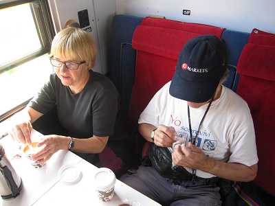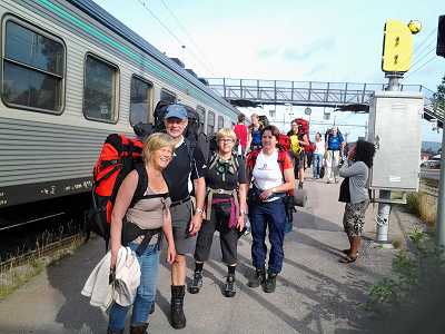 När vi senare gick till tåget stod systrarna Karin och Annika och väntade. Däremot saknades en deltagare från Skåne som råkat ut för en olycka kvällen före och en åttonde person får vi reda på i morgon om hon kan komma eller inte. Så vi blir sex eller sju personer på resan. |