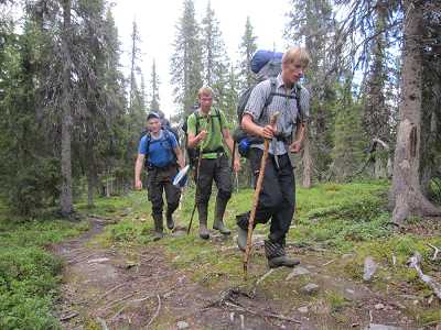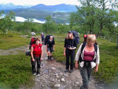 honom över sjön. Då följde även Karin och Annika med och tänkte vandra