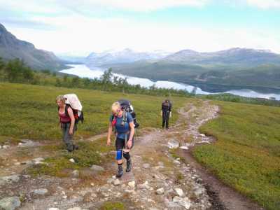 Det tog några timmar att komma fram till Kebnats. Då hade vädret blivit mulet och svalare. Det visade sig vara många vandrare på gång så efteråt kom ytterligare en buss fylld med vandrare. Dessutom kom en buss med vandrare från Ritsem och skulle till Gällivare. Samtidigt kom båten från Saltoluokta med vandrare vilka också skulle tillbaka till Gällivare. Vi klev på denna båt där färden över till Saltoluokta kostade 100:- för stf-medlem. När vi var framme vid fjällstationen i Saltoluokta fick vi ett rum i huvudbyggnaden utom Karin och Annika som fick sovplats i andra stugor då de hade beställt senare än vi andra. Efter lunch har vi tagit en promenad på några kilometer upp mot några utsiktsplatser. Det var en trevlig promenad men på väg tillbaka började det regna så jag fick prova min poncho. Vi kom även in på Kungsleden som vi ska vandra i morgon. Nu tar vi det lugnt några timmar och väntar på middagen kl. 18 som jag tror kommer att bli mycket god. |