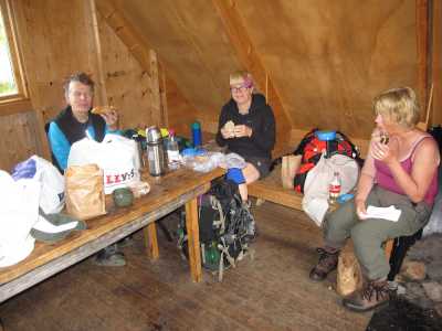 En halvtimme senare kom vi fram till raststugan som är på halva vägen. Där fanns även