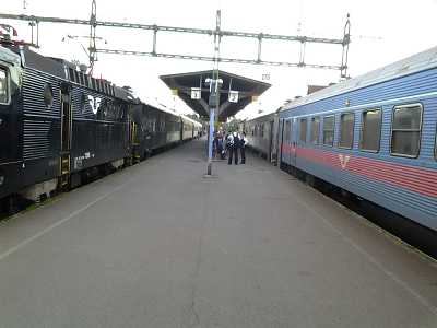 Vi andra tänker äta lunch här vid ettiden och tar sedan bussen klockan tre till Murjek. Där går vi på tåget klockan sju i kväll och är sedan framme i Stockholm i morgon klockan nio. |
